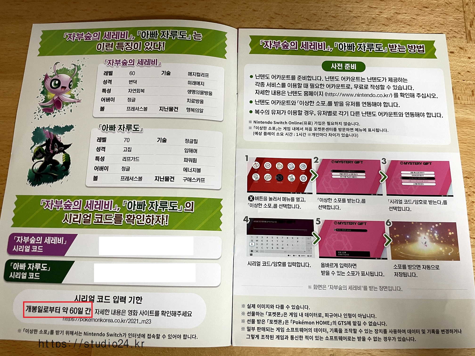 1. 전원 증정 : 자부숲의 세레비, 아빠 자루도 (스위치 소드 실드)