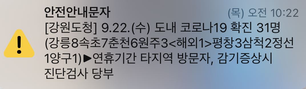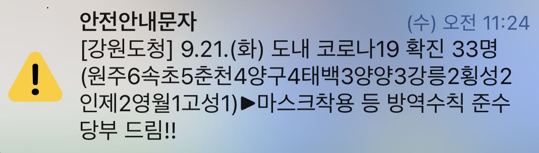 안전 안내 문자를 확인해 보니 확~ 눈에 보입니다.