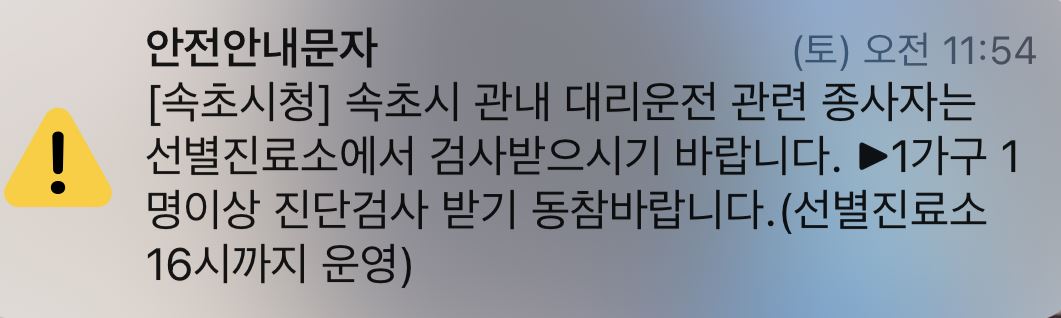 속초에서 대리운전을 이용했던 분들은 선별 검사가 꼭 필요합니다.