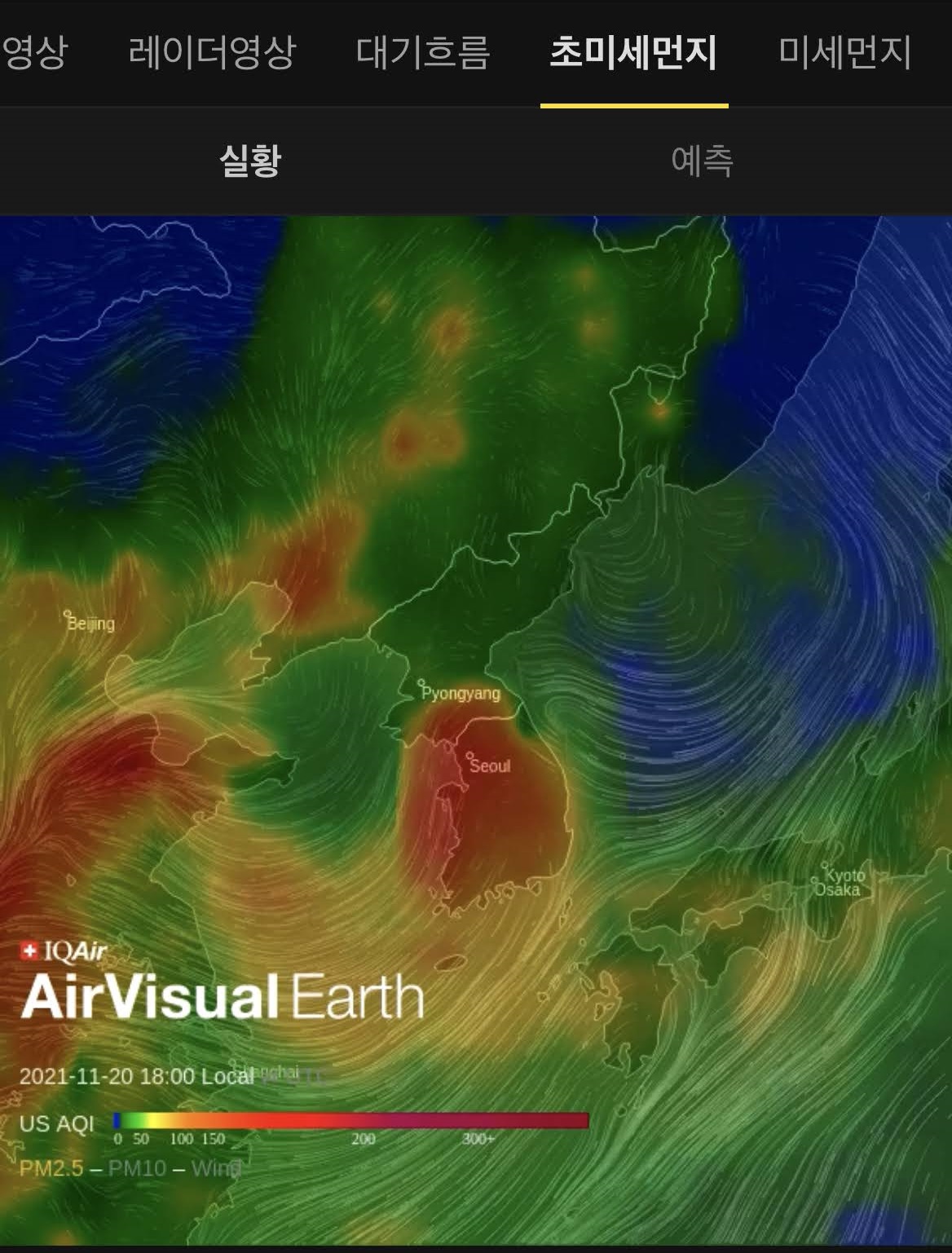 11월 3주 주말은 동해 쪽은 맑은 상황이 유지되고, 도심은 나쁜 현상이 지속될 거 같습니다.