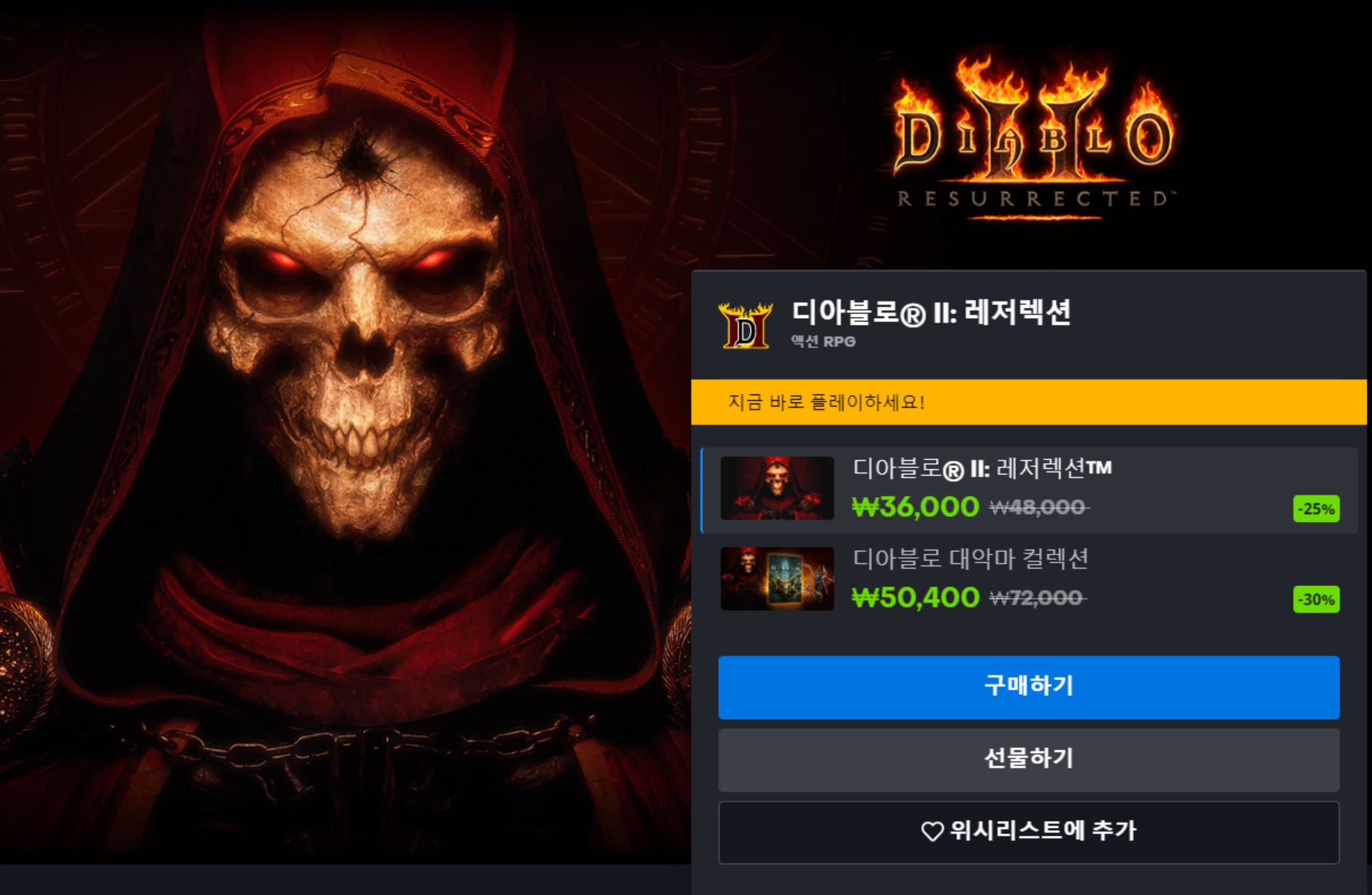 집에 디아블로2, 디아블로3 ~ 다 있지만, 그래도 레저렉션 버전으로 해보고 싶어 구입해 봤어요.