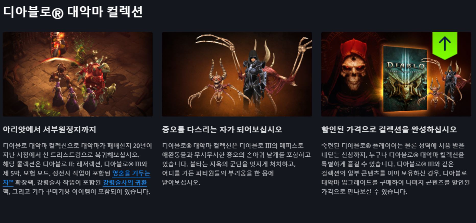 디아블로가 없는 경우 대악마 컬렉션이 좋은 선택지가 될 거 같습니다.