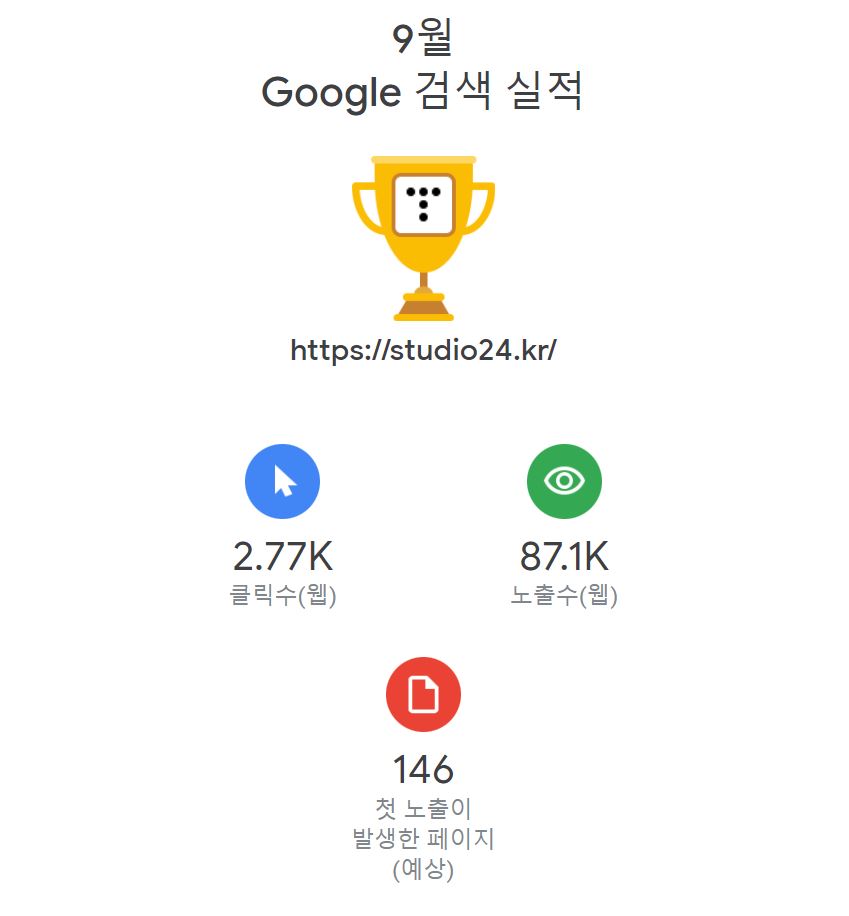 너무 정신없었던 10월, 11월이 지나고 메일함을 살펴보니 9월 검색 실적이 도착해 있었어요.