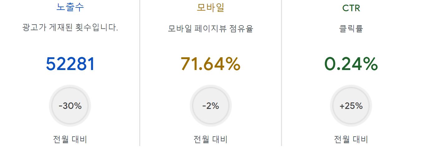 전월 대비 노출수가 상당히 많이 감소했습니다.