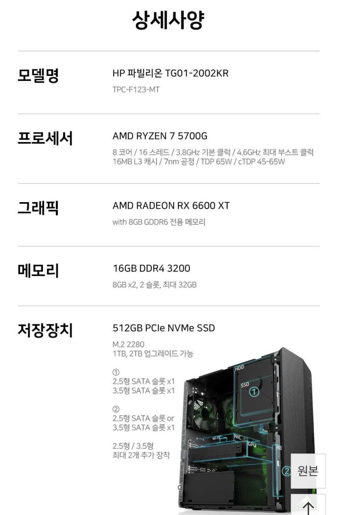 Win11 정품, 라이젠7 5700G, RX6600XT, 16GB, NVMe SSD 512GB, 출장 a/s 1년