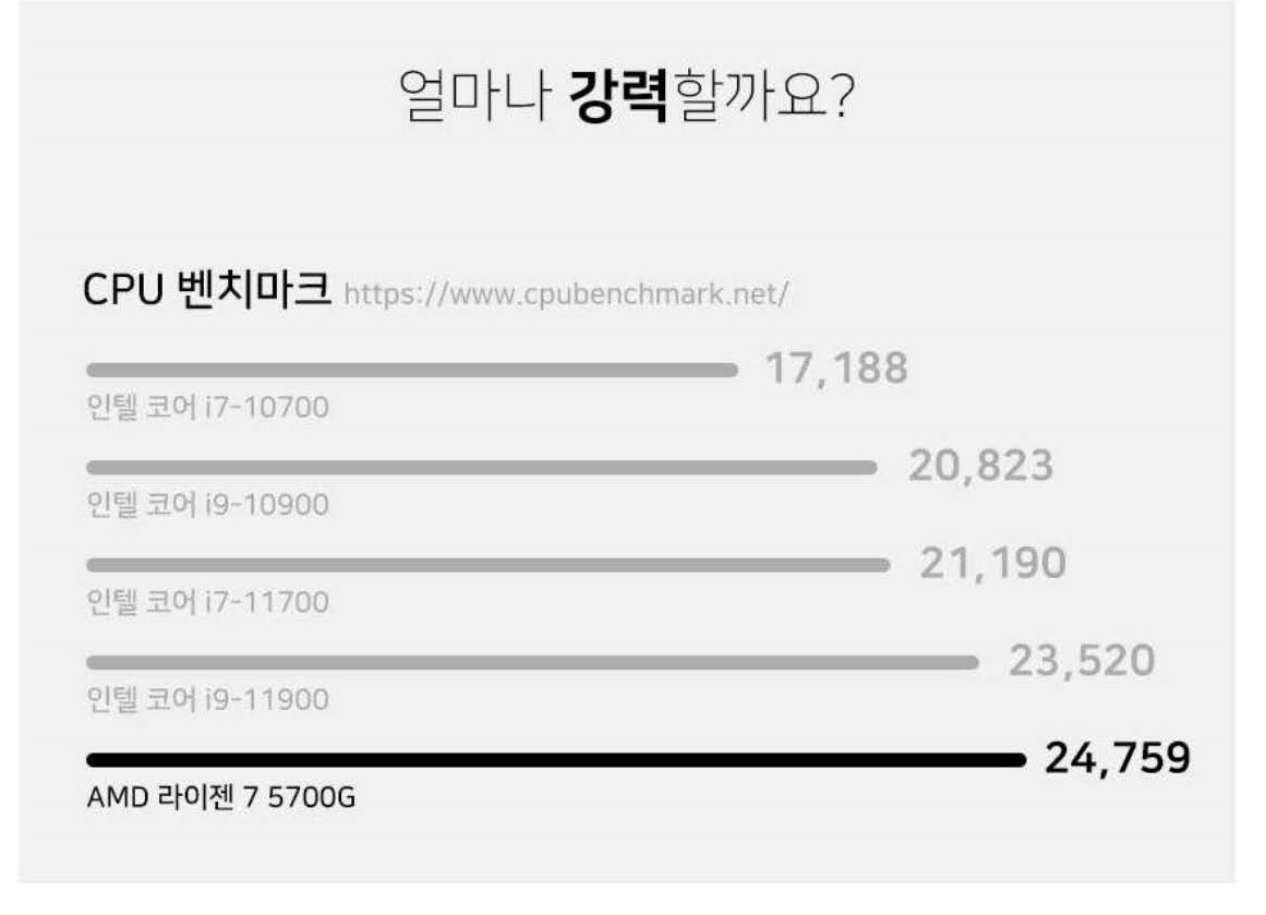 CPU 성능으로는 인텔 i9-11900 보다 빠릅니다.