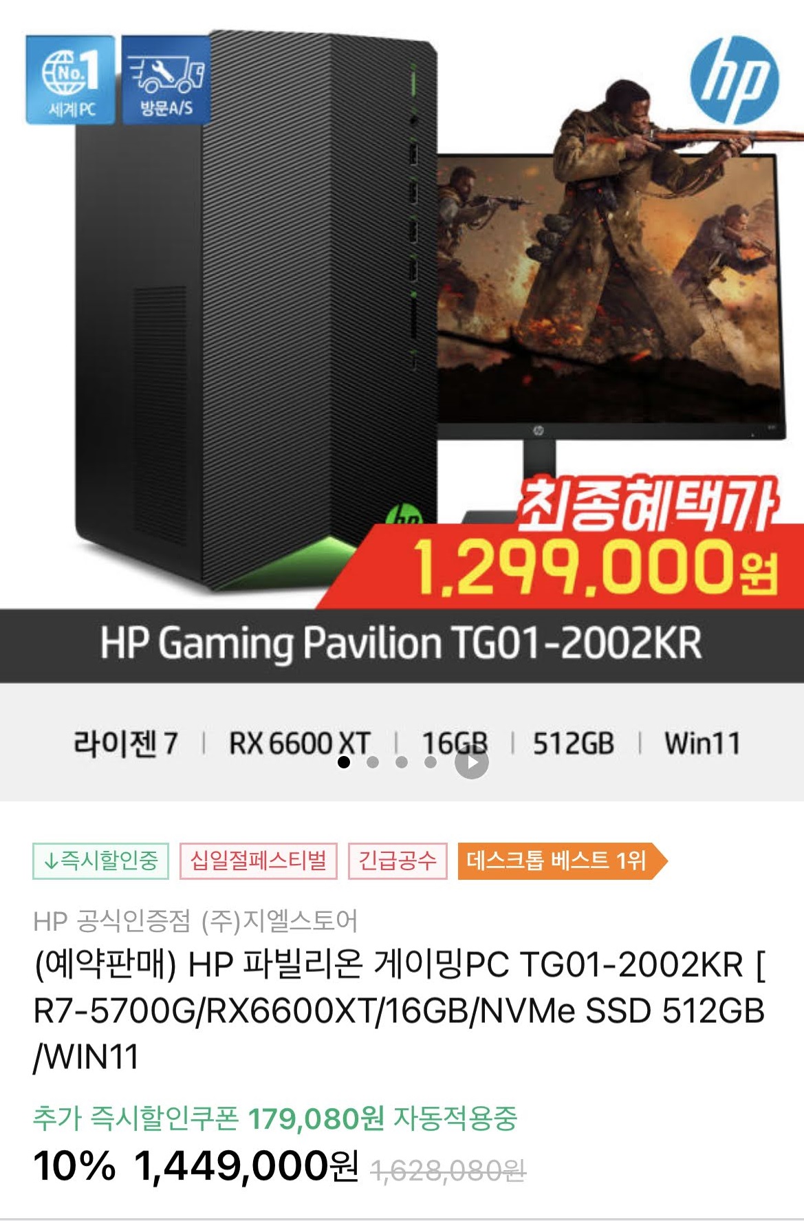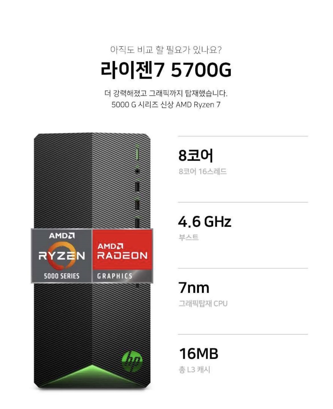 Win11 정품, 라이젠7 5700G, RX6600XT, 16GB, NVMe SSD 512GB, 출장 a/s 1년