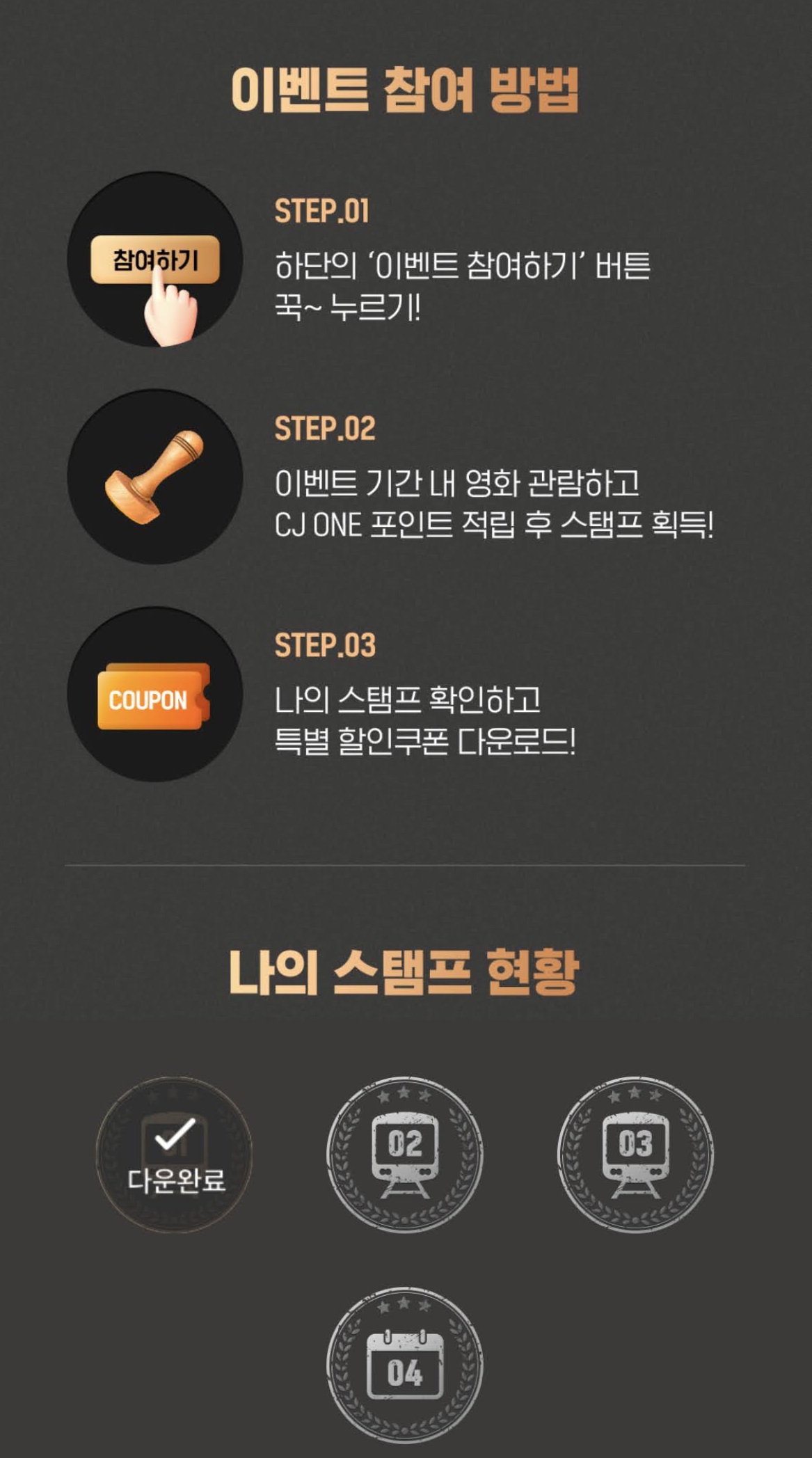 주의. 동일 영화를 관람하시면 포인트 적립이 안되고, 스탬프도 찍히지 않습니다.