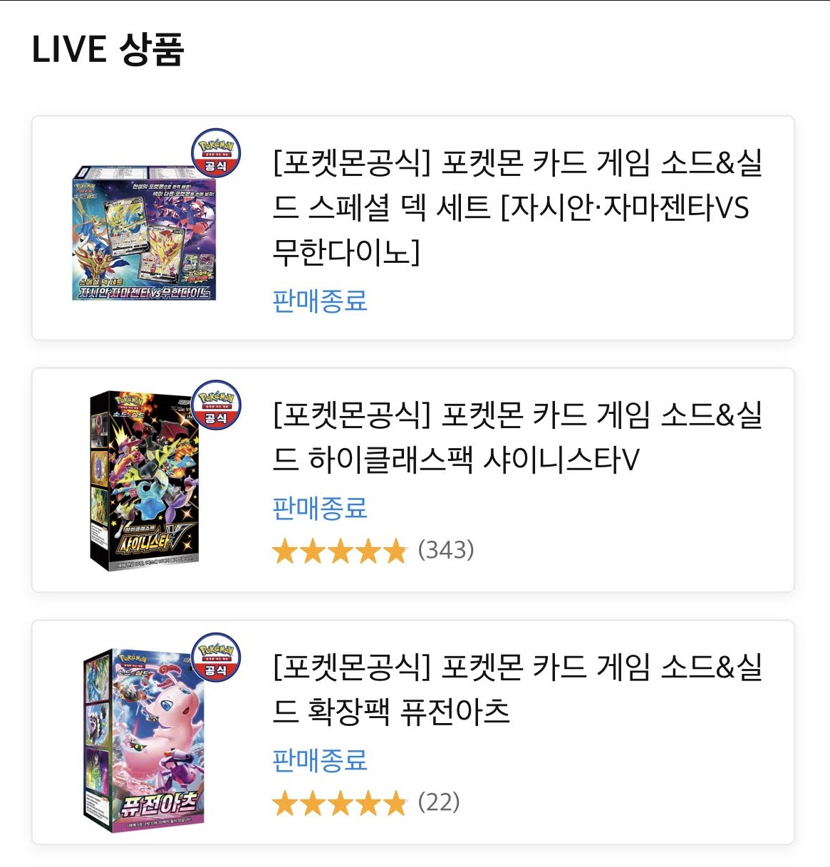 포켓몬 카드 게임이 11번가 라이브 방송되었습니다.
