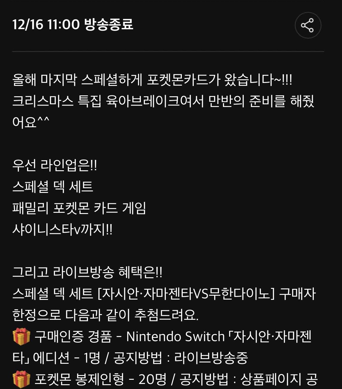 포켓몬 카드 게임이 11번가 라이브 방송되었습니다.