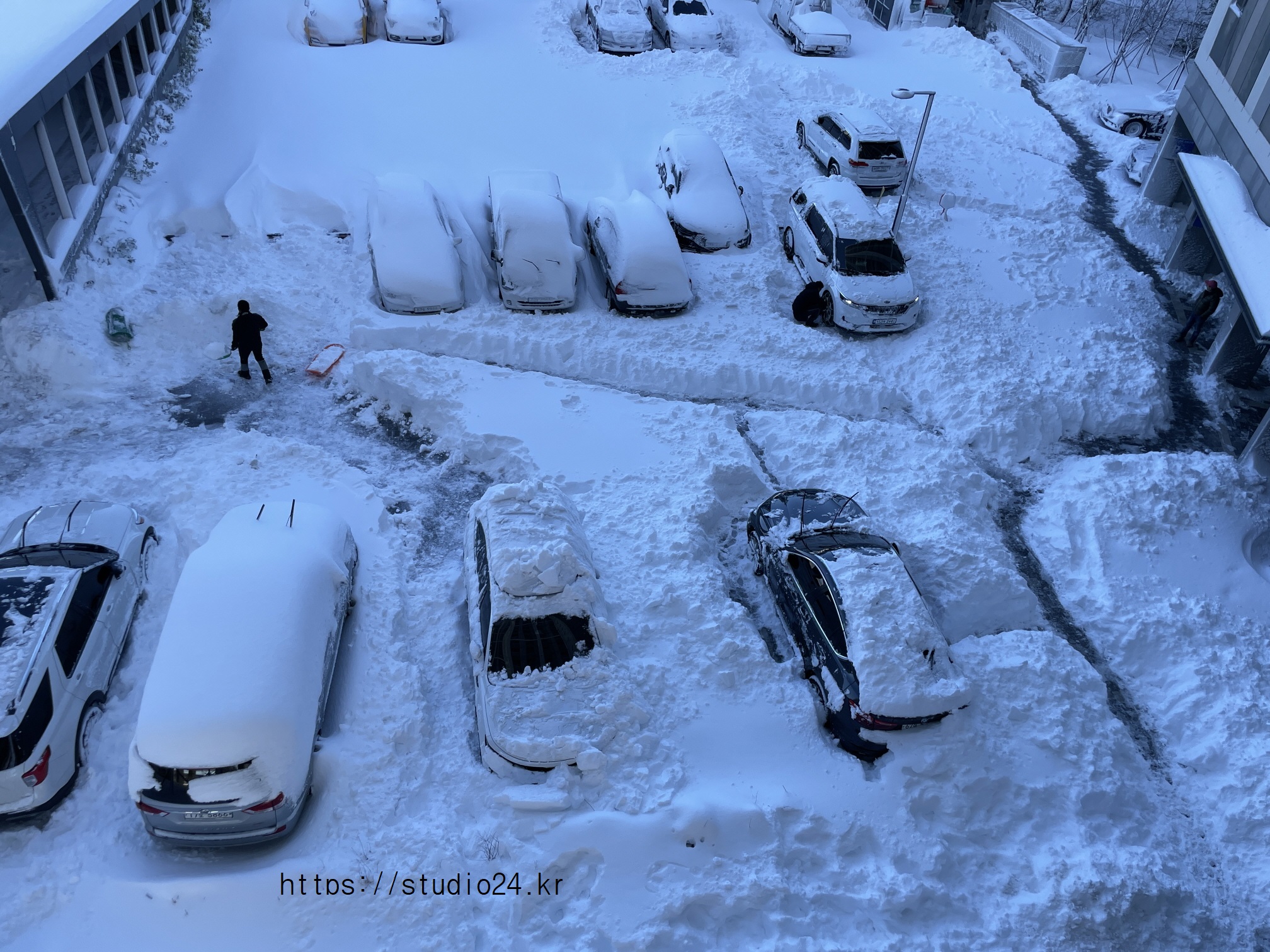 반나절 눈을 파내고 탈출을 시도하시는 주민분들입니다.