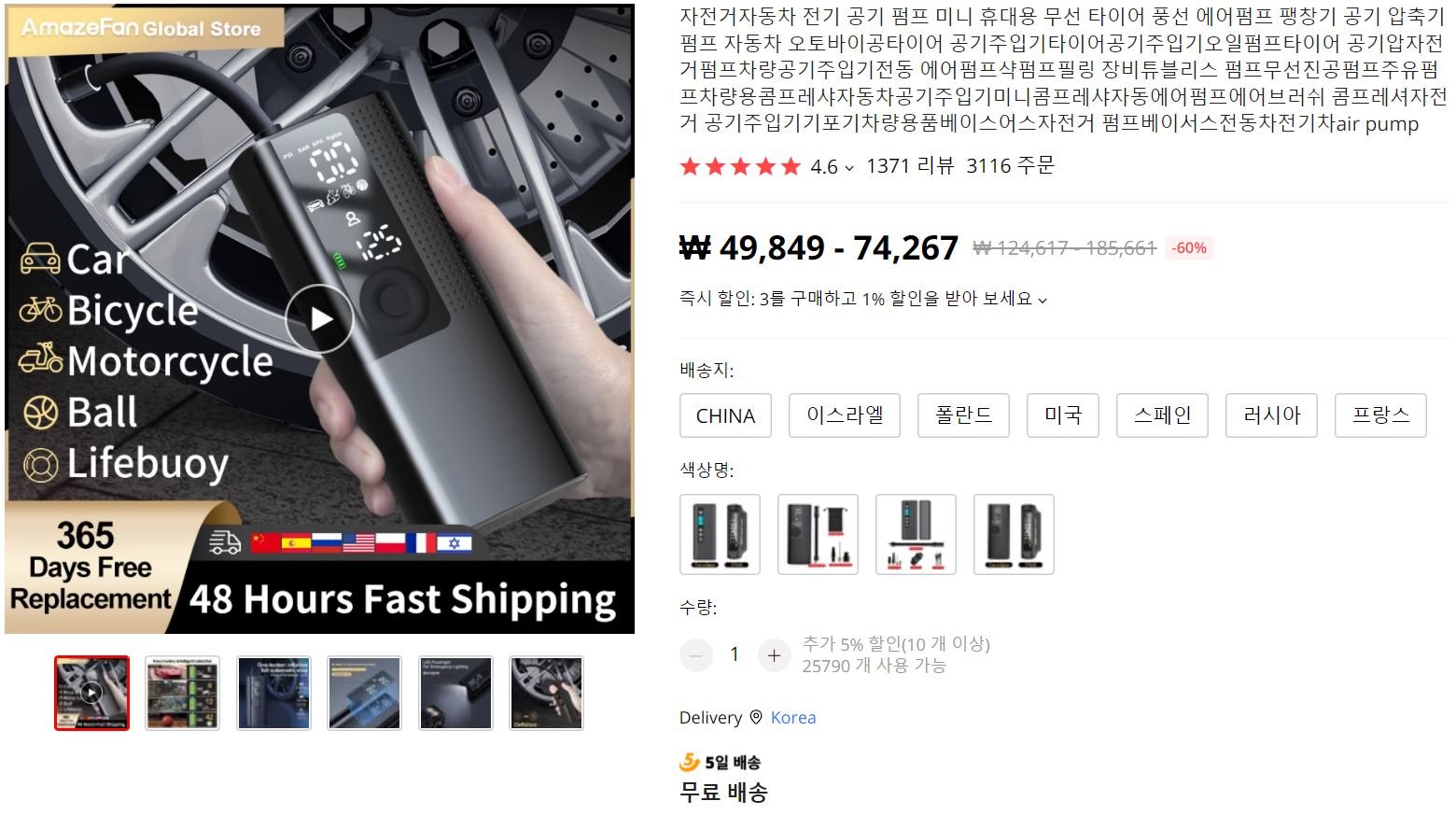 그럼 미니 공기 펌프 구입기 마칩니다.