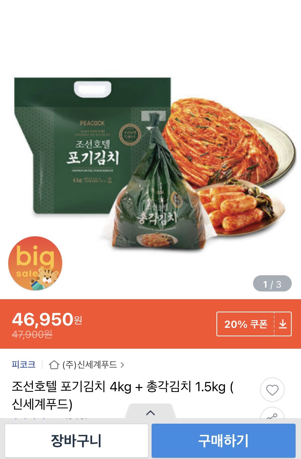 조선호텔 포기 김치가 특가로 나왔습니다.