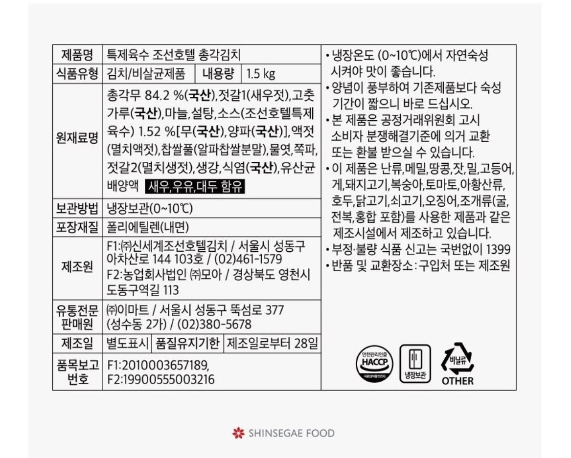 조선호텔 포기 김치가 특가로 나왔습니다.