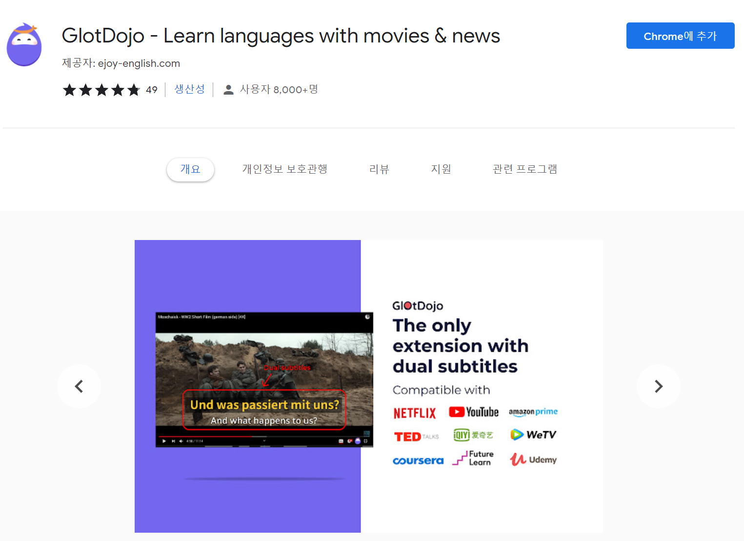 https://chrome.google.com/webstore/search/GlotDojo?hl=ko