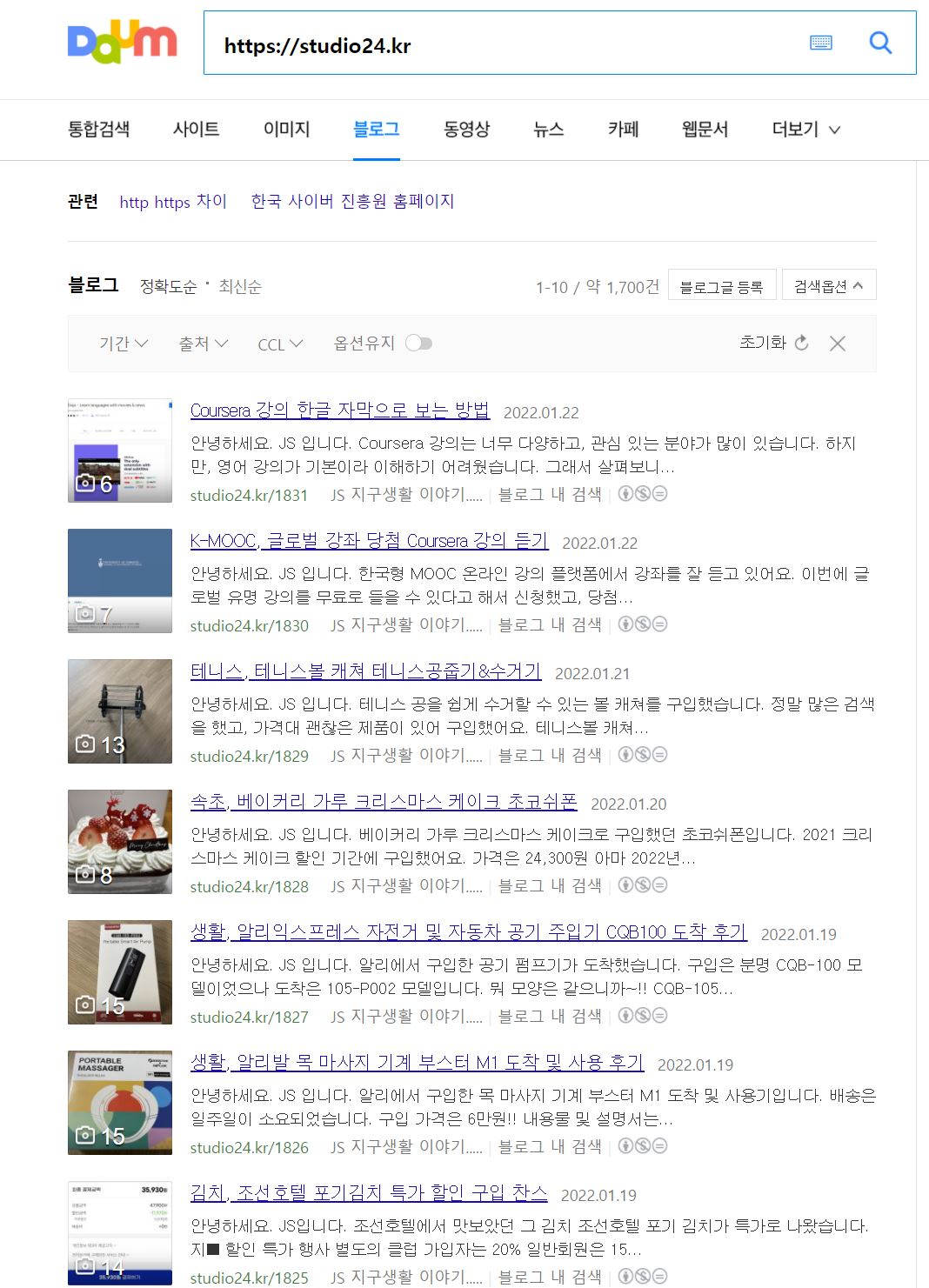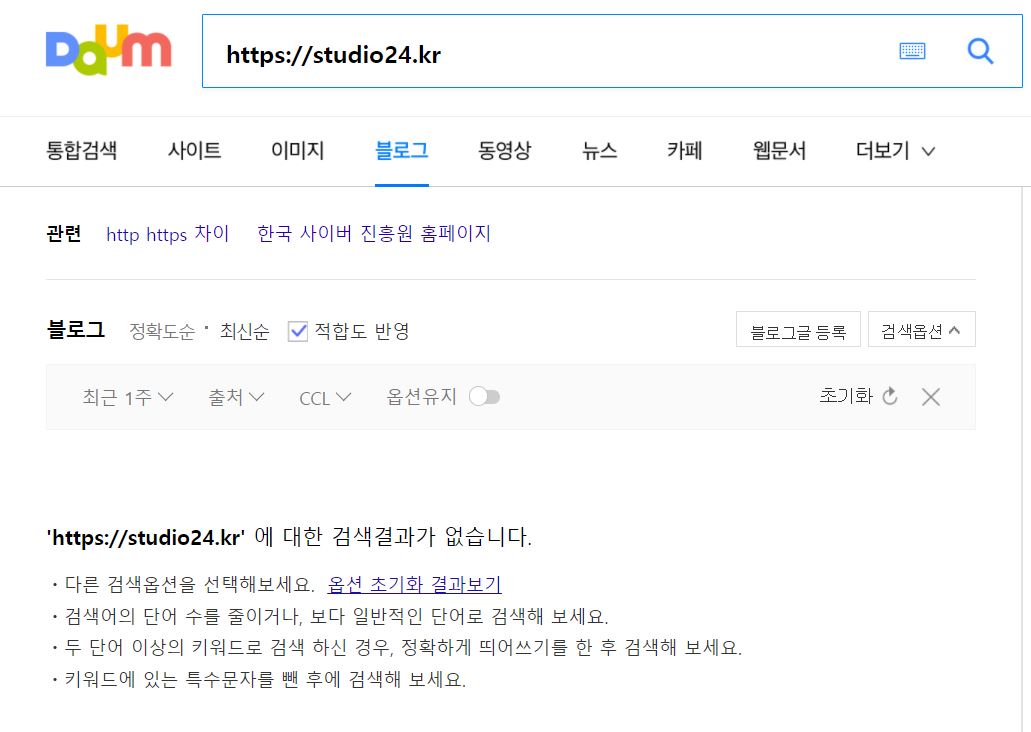 다음 검색창에 사이트 주소를 넣으면 확인 가능합니다.