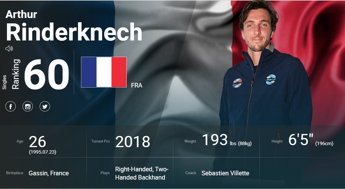 대진 상대는 Arthur Rinderknech (60위, 프랑스)