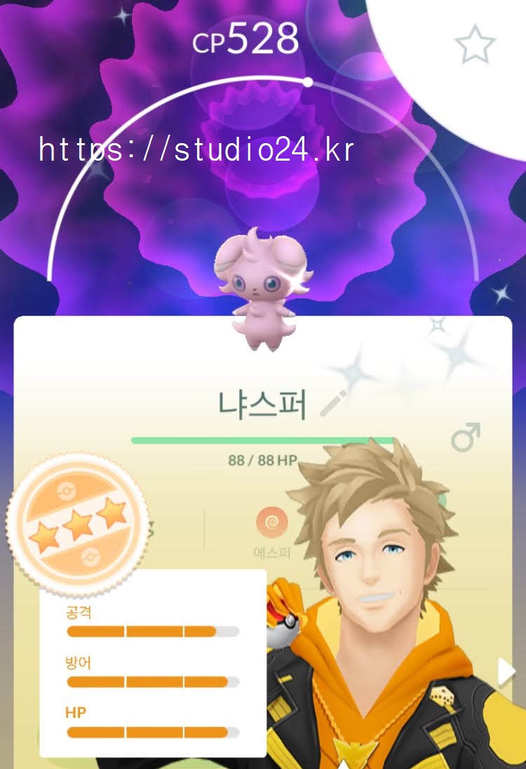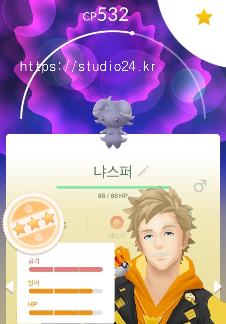 별 3개, 거기다 색이 다른 냐스퍼!