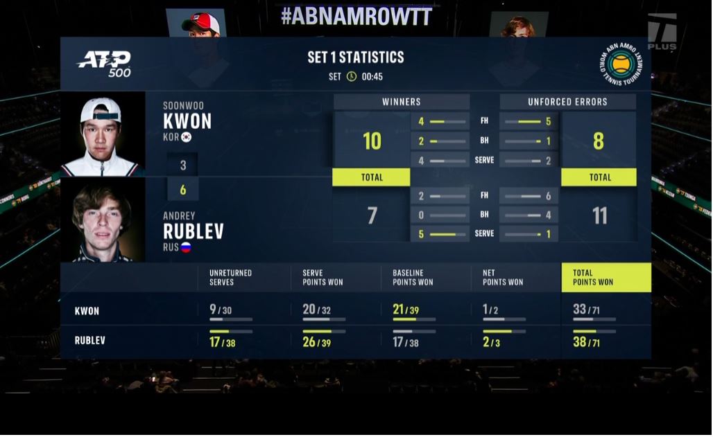권순우 선수는 1세트에서 정말 아쉽게 본인의 서브를 내주면서 지게 되었습니다.