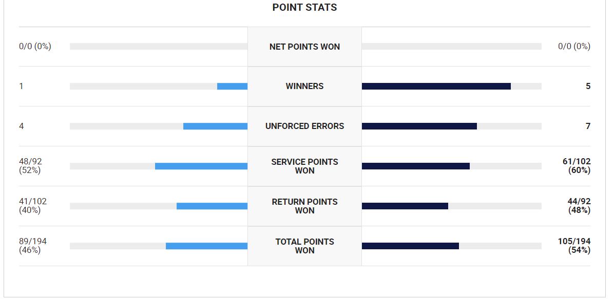 서브 에이스의 차이와 첫 서브 득점에서 밀린 권순우 선수 너무 아쉽습니다.