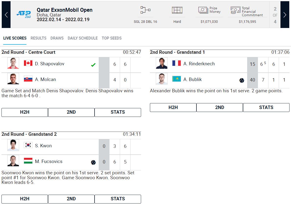 ATP250 Qatar ExxonMobil Open 대회가 진행되고 있습니다.