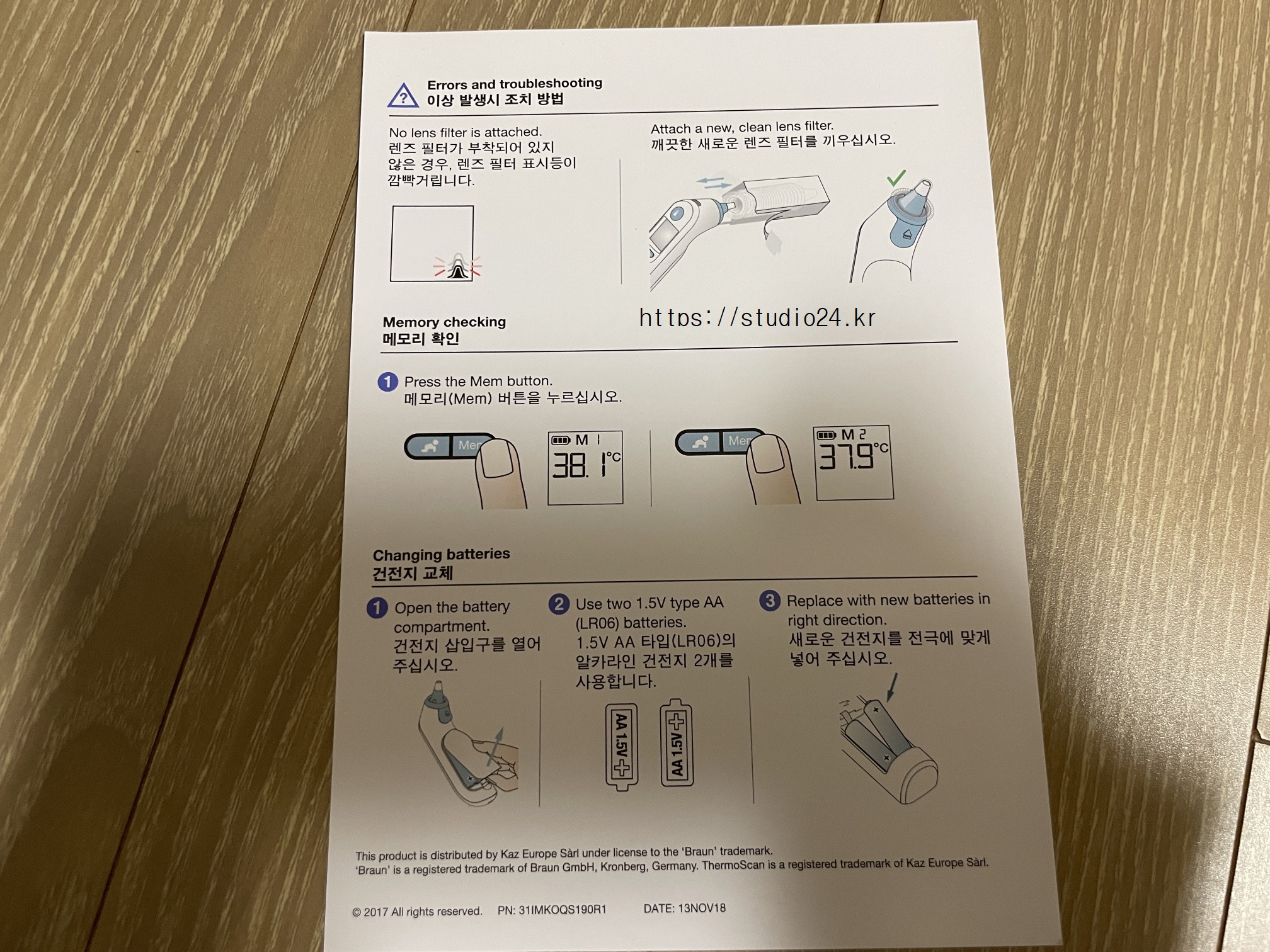 설명서는 한글로 되어 있었고, 기존에 브라운 체온계를 사용했기에 적응은 쉬웠습니다.