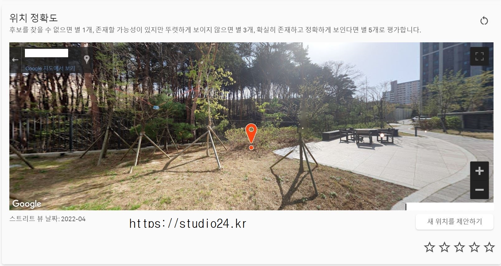 실제 위성이나 지도를 보면 아파트가 보이는데, 스트리트 뷰 기준으로 보이지 않는다고 계속 거절되고 있습니다.