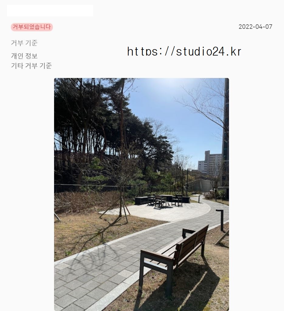 사람 얼굴 있거나 사진이 흐릿하거나 개인 거주지, 학교와 병원은 거절 사유입니다.