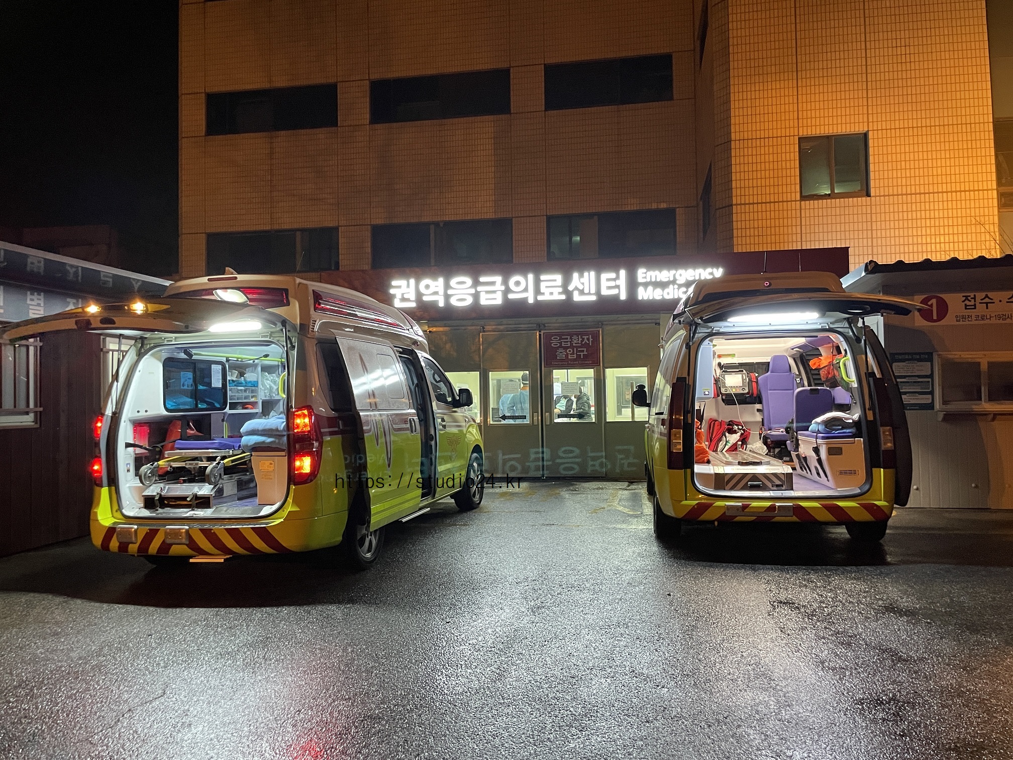 처음으로 119에 응급 요청을 했고, 응급차도 처음 타봤는데, 첫 이용 괜찮았습니다.