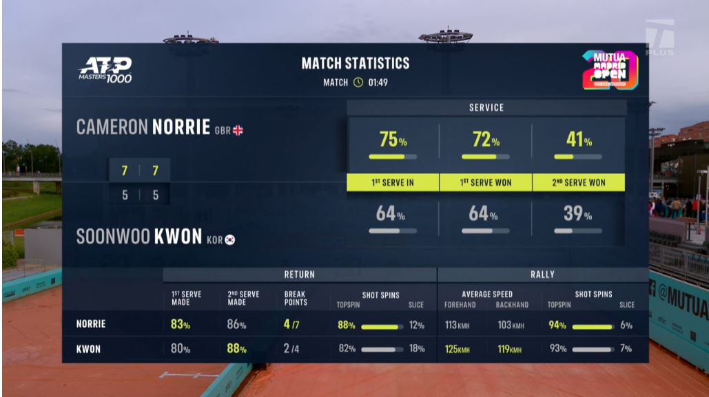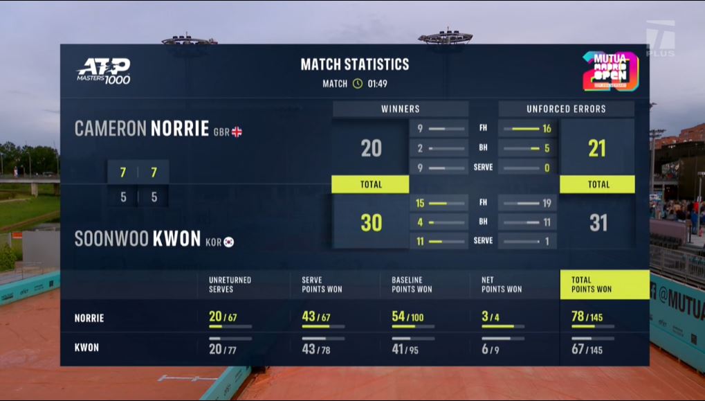 권순우 선수가 ATP1000 마드리드 오픈 본선에서 1회전 탈락했습니다.