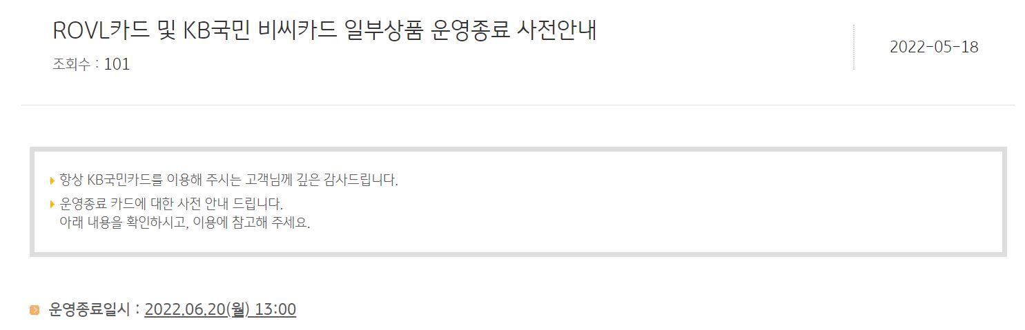 ROVL카드 운영 종료