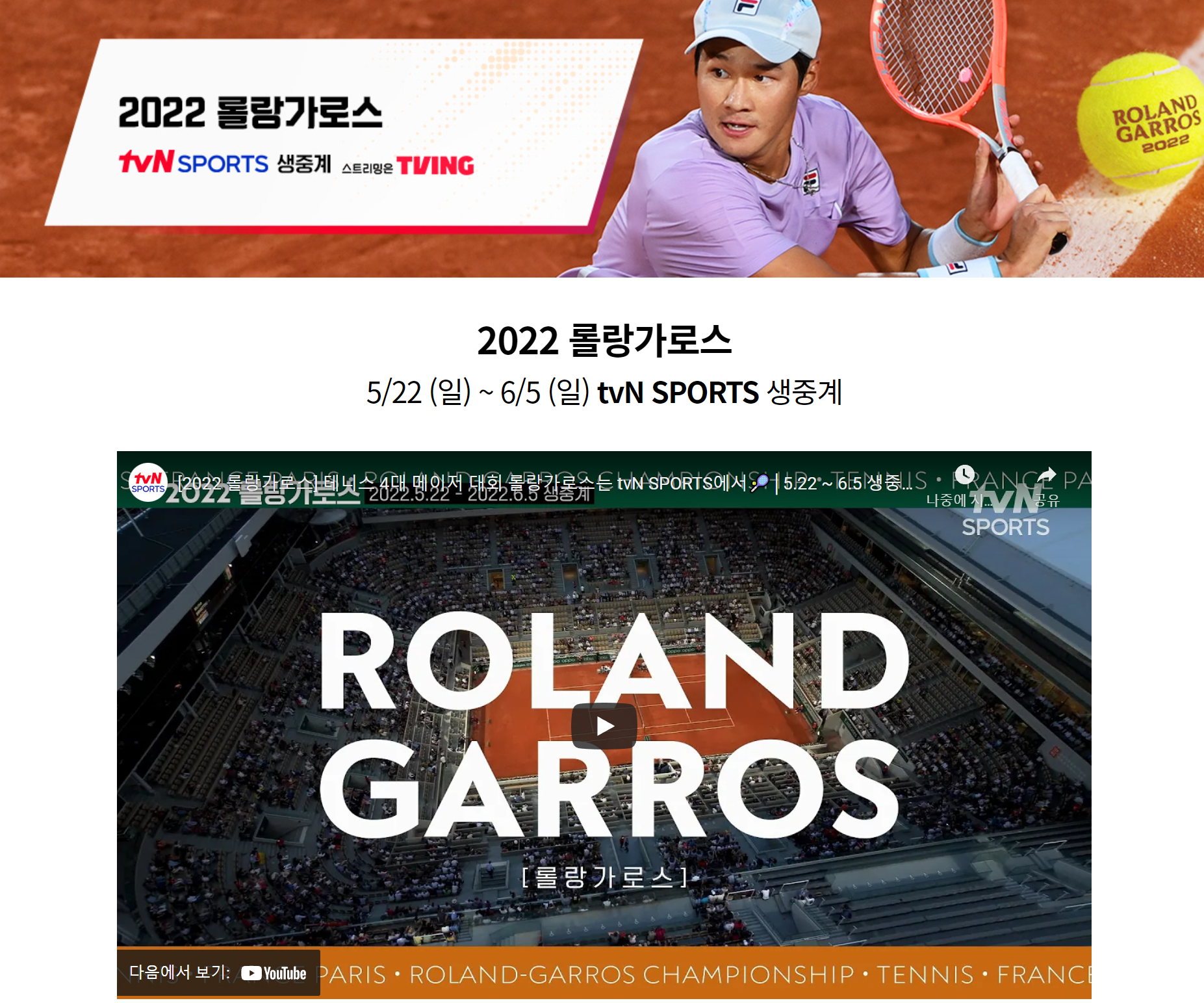 2022 롤랑가로스는 TVN스포츠에서 생중계