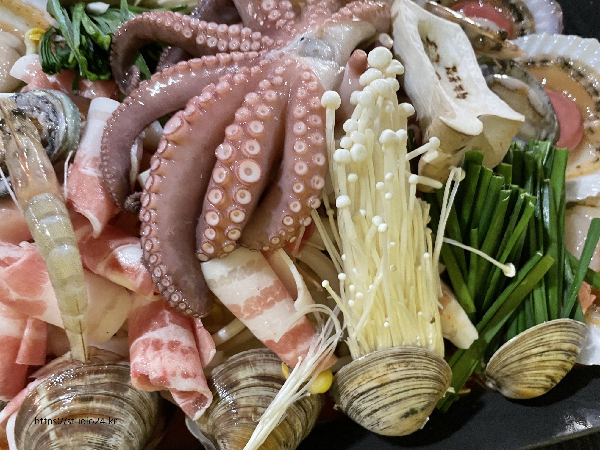 고기 + 야채 + 해산물 + 문어