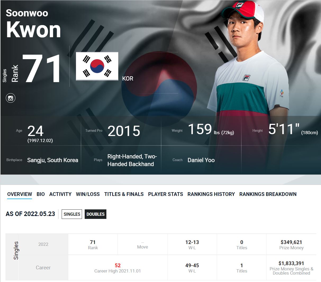 권순우 선수는 71위