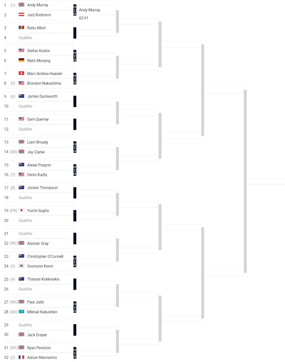 대진을 살펴보면 이번 32강을 승리하면 다음 선수는 알라스테어 그레이