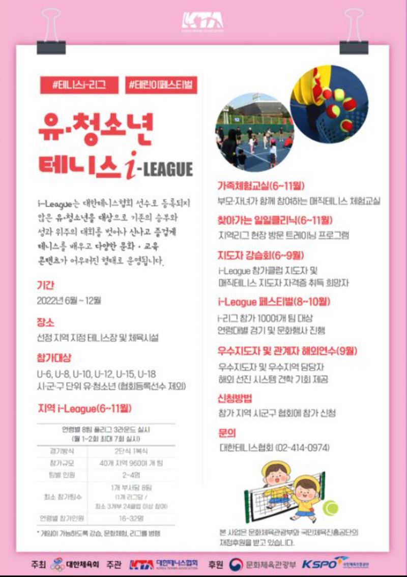 대한테니스협회, 프로-아마추어 통합형 리그제 시행 첫걸음! 김예현 2022년 승강제리그, 유·청소년 클럽리그, 유·청소년 주말리그 등 대형 공모 사업 3종 동시 선정 전문체육, 생활체육 통합형