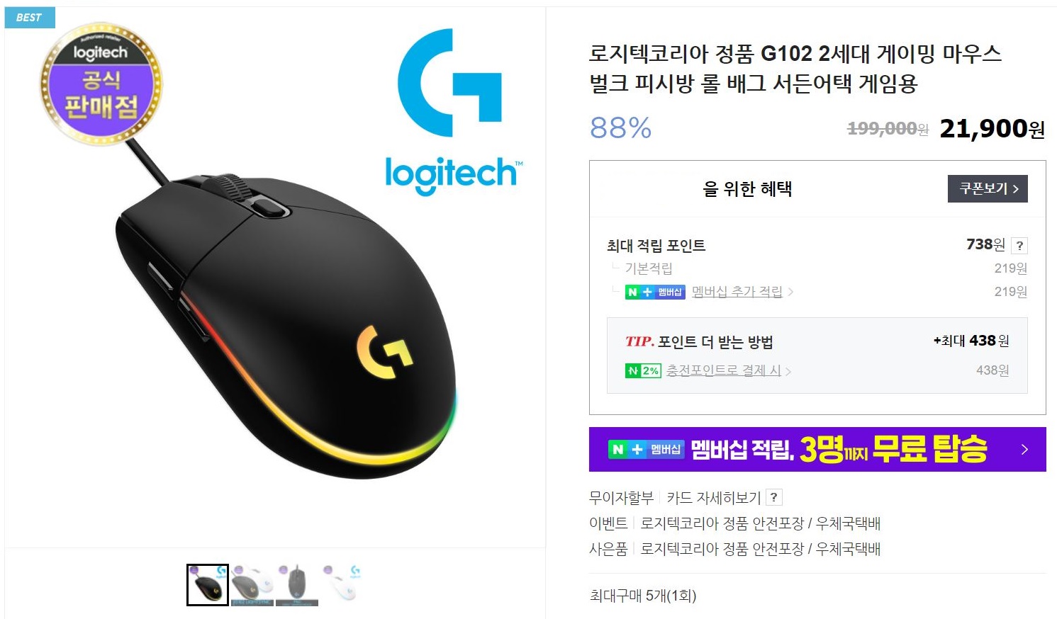 | 마우스, 로지텍 게이밍 마우스 G102 2세대 정품등록 (0) | 2022.07.01 |