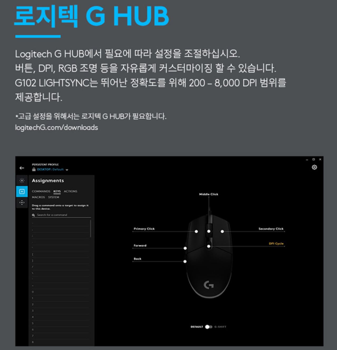 로지텍 G HUB를 사용하면 많은 옵션을 선택할 수 있습니다.