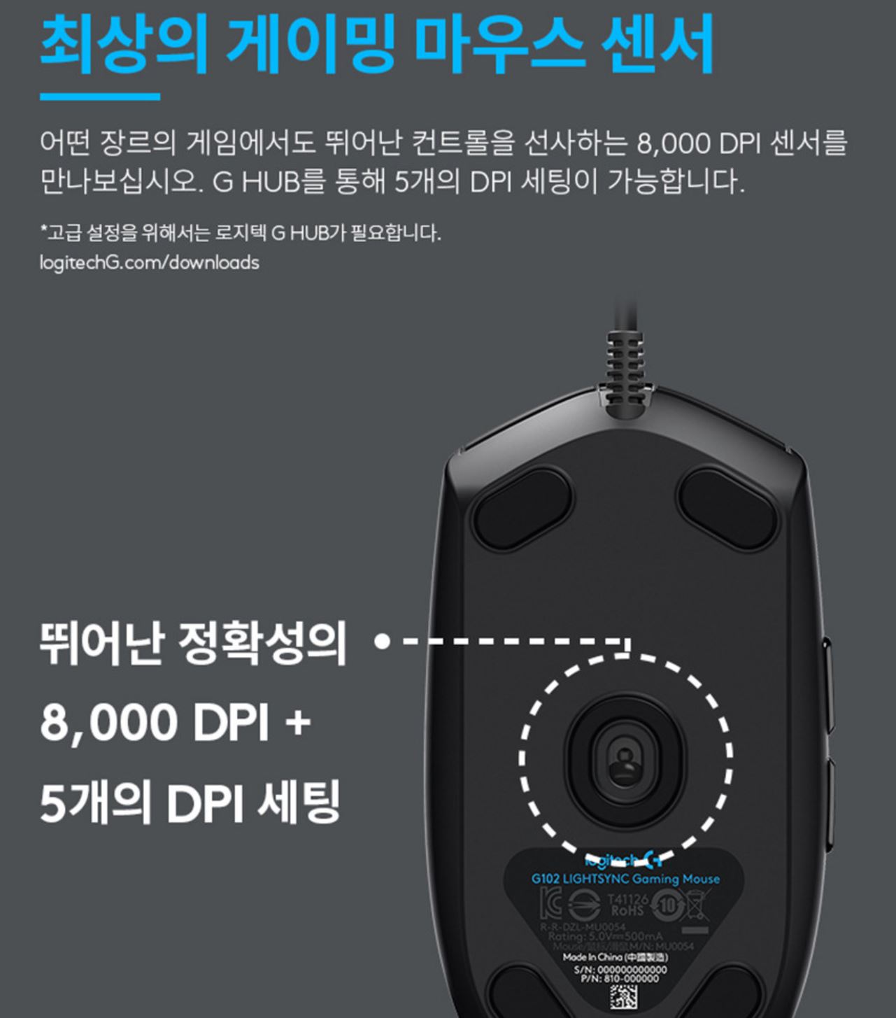 보통 게임할 때 2,000 DPI 상태면 어느 정도 무리가 없습니다.