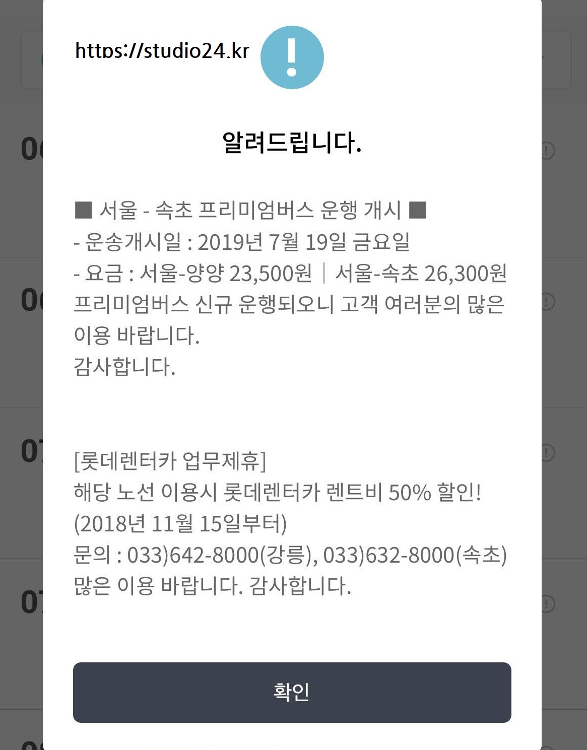 ■ 속초로 가는 버스 비교