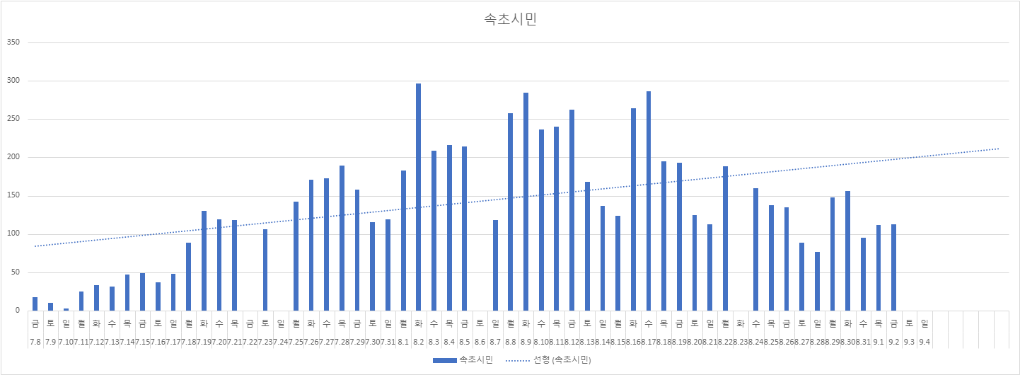 휴가철이 지난 후 속초는 코로나19 확진자가 많이 감소했습니다.
