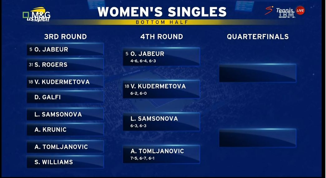 아일라 톰랴노비치의 경우 8강에서 O.자베르를 만나 졌습니다.
