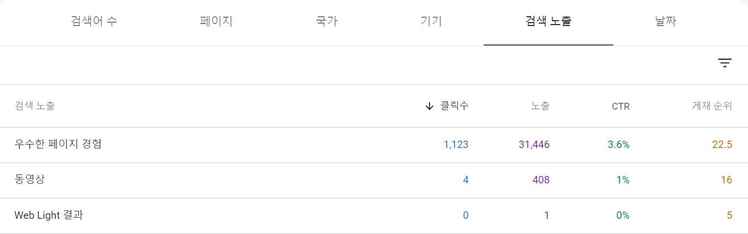 우수한 페이지 경험 클릭이 전월도 동일합니다.