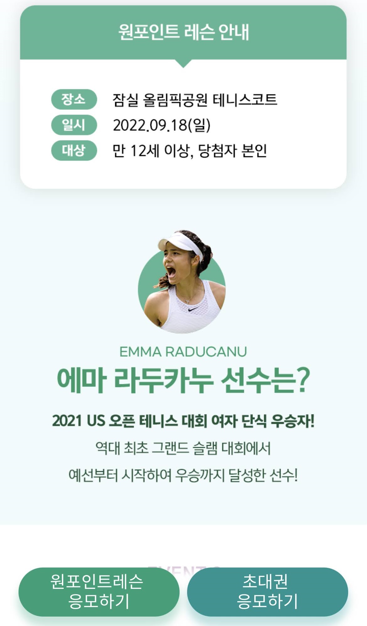원포인트 테니스 레슨의 경우 응모는 했으나 탈락했어요.