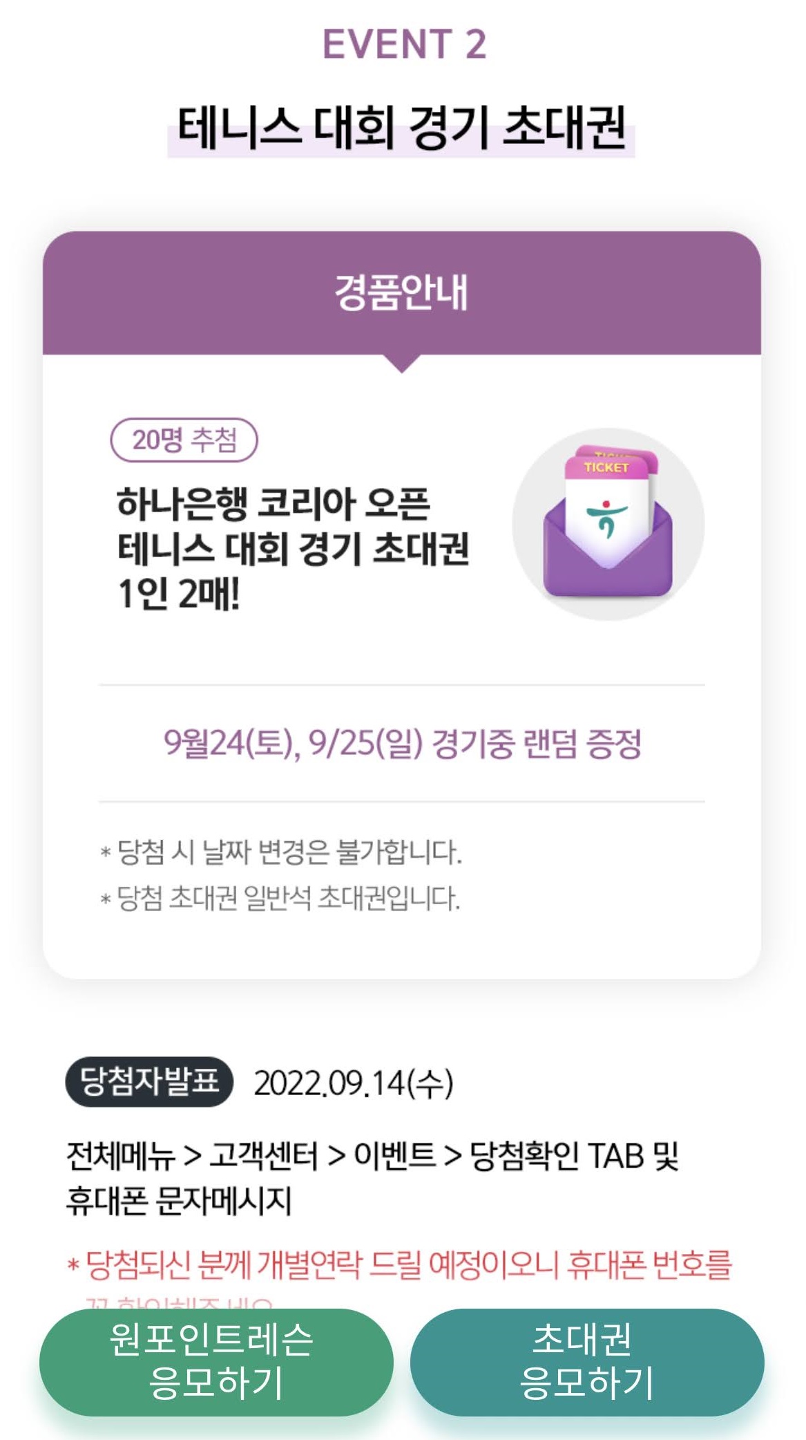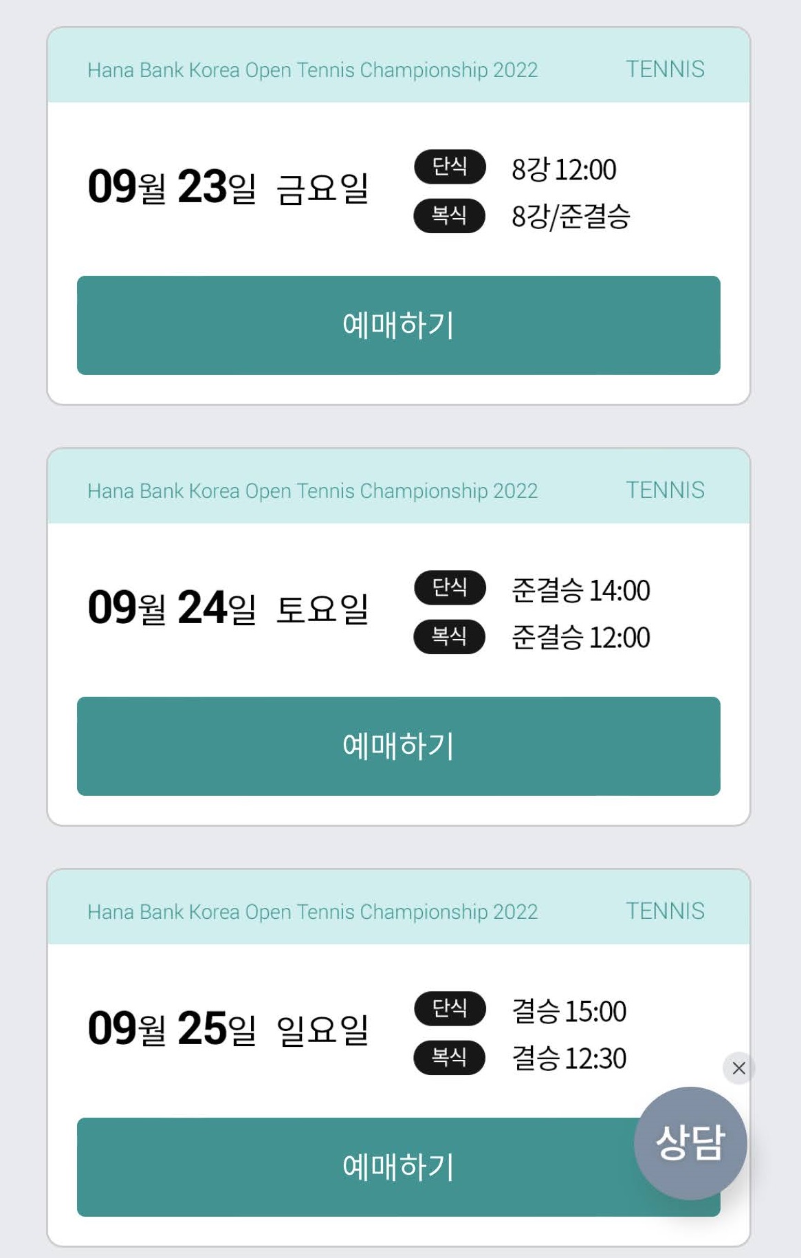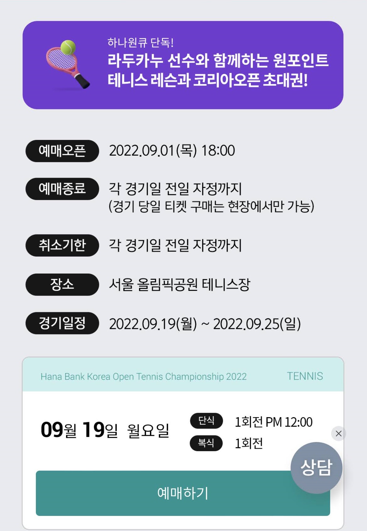 하나은행 코리아오픈 테니스 대회 예매는 하나은행 어플에서 예매가 가능했습니다.