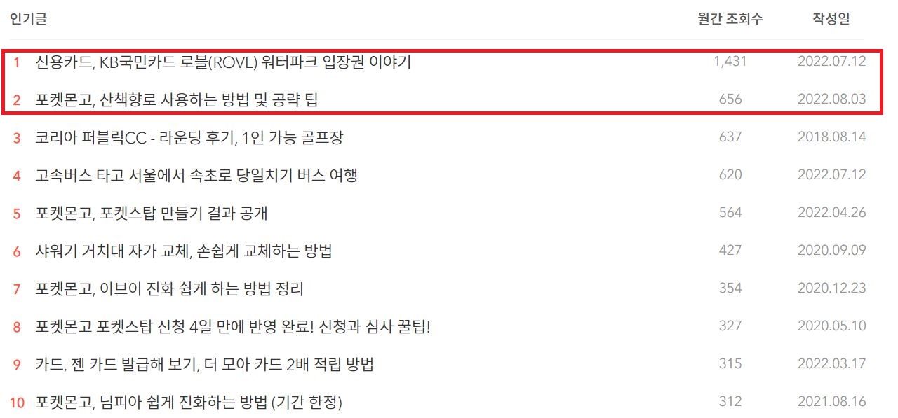 2022년 08월 인기글 리스트