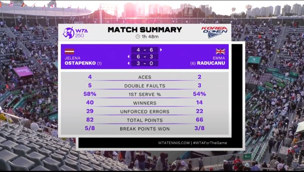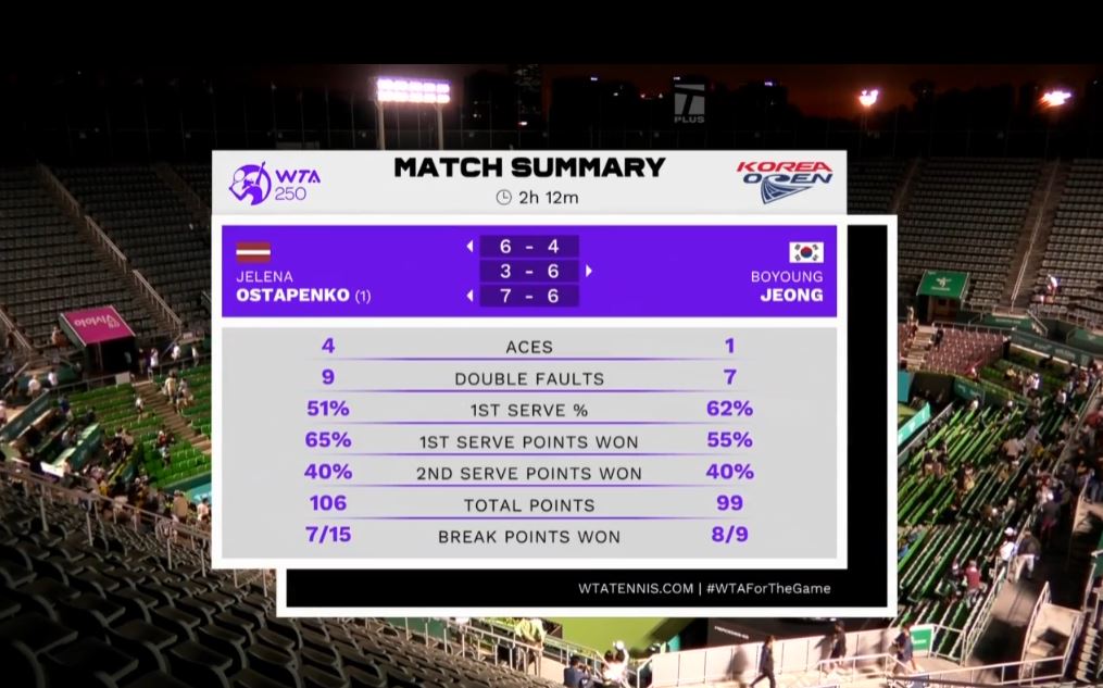 32강, 한국의 정보영 선수와 시드1번 오스타펜코 선수의 경기