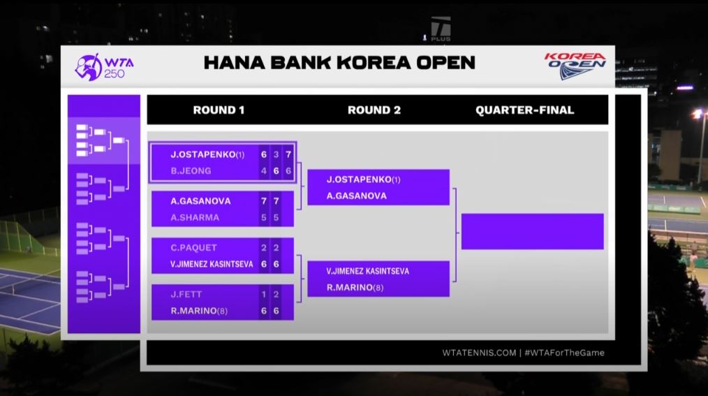 32강, 한국의 정보영 선수와 시드1번 오스타펜코 선수의 경기