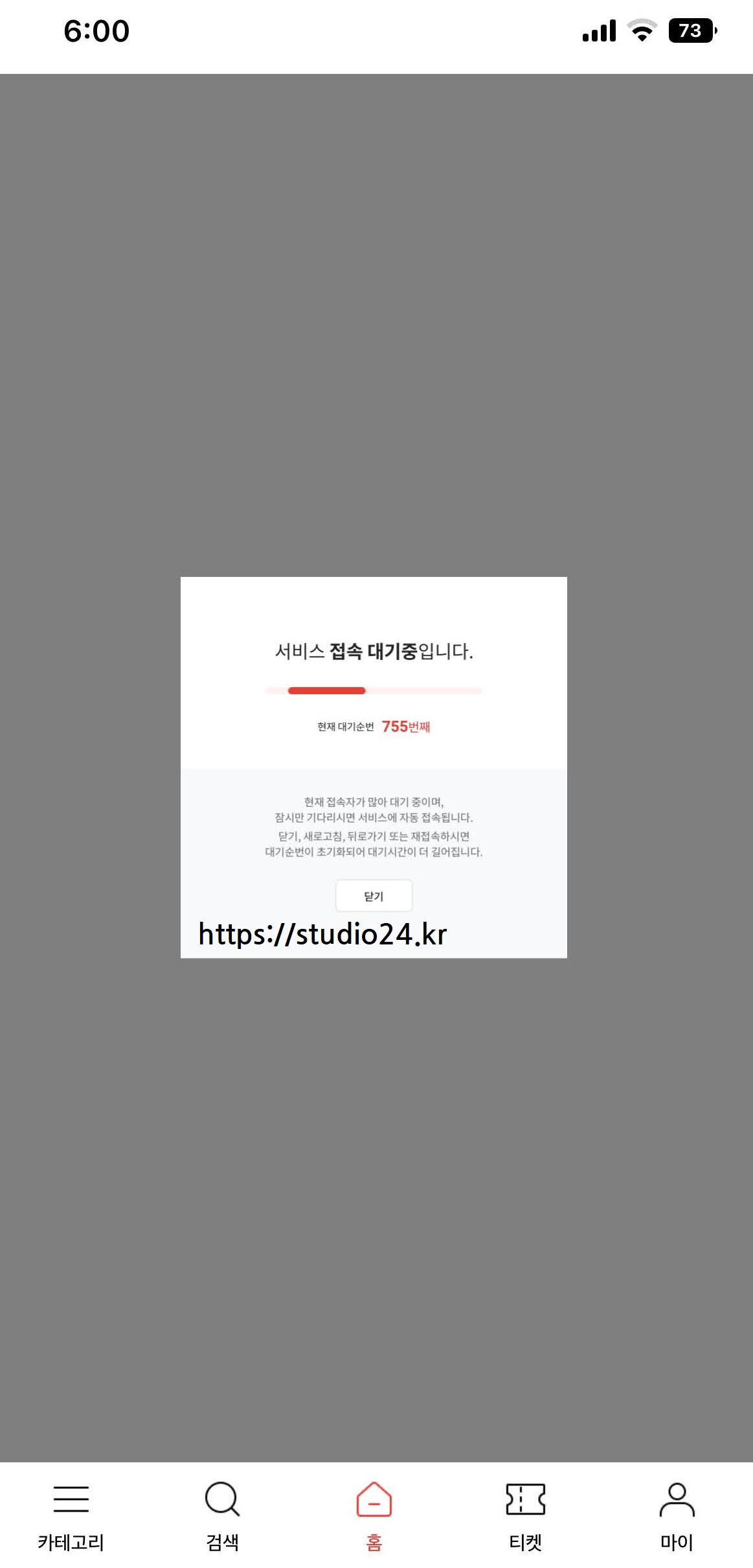 바로 다른 분이 예약을 했고, 저는 튕기면서 다시 접속 대기로 돌아갔습니다.