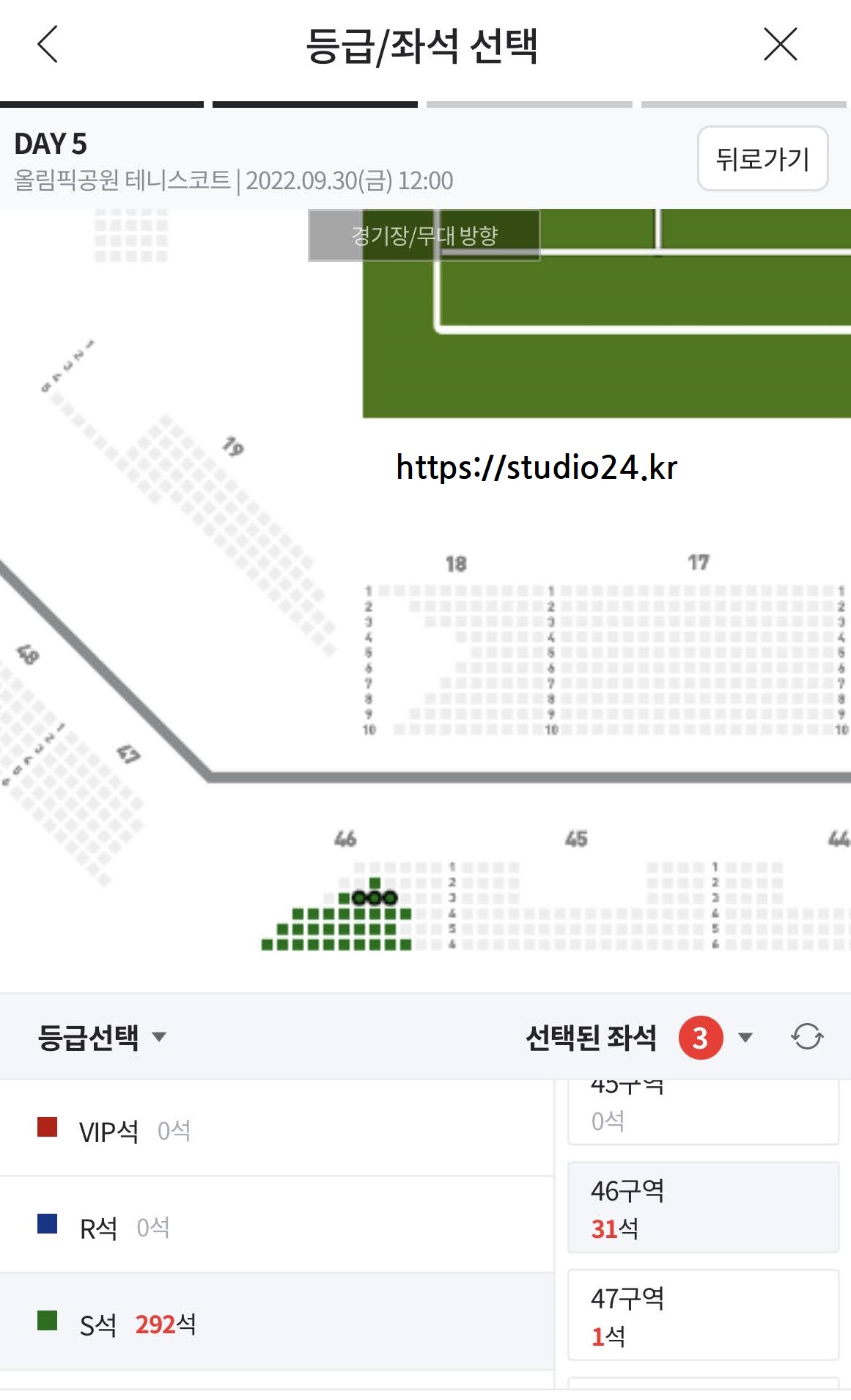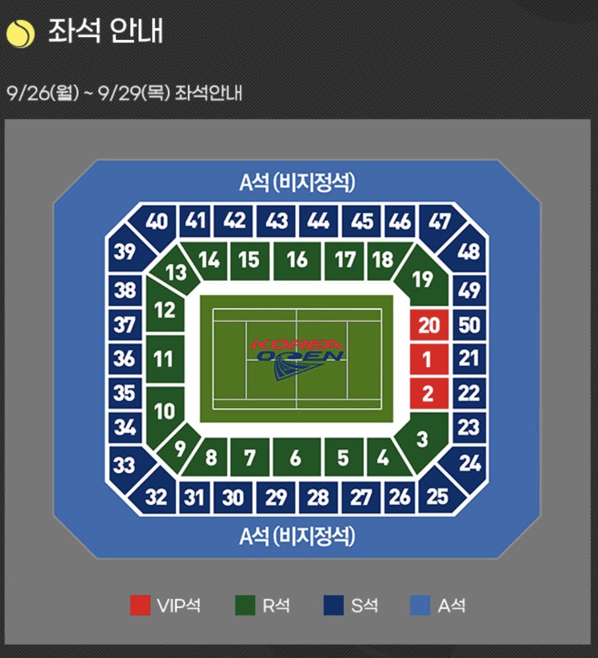 WTA 경기보다 티켓 가격이 비싸고, 평일임에도 티켓이 많이 소진되어 있어 많은 관중이 몰릴 거 같습니다.